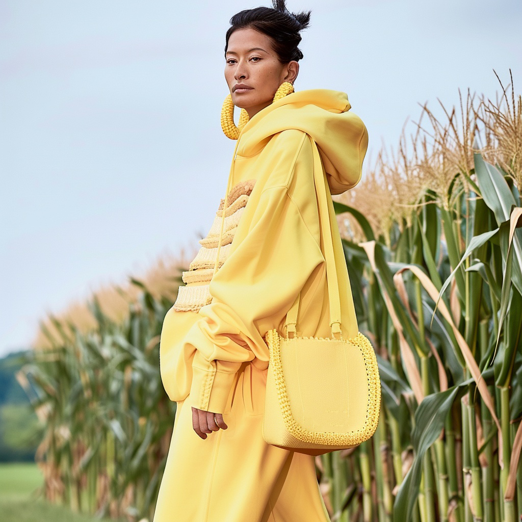 Les détails tressés et les franges s'inspirent des techniques artisanales, rappelant les épis de maïs et les matériaux naturels.